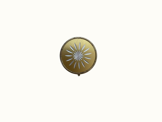 Vintage Gold Starburst Round Pill Box, 3 Compartments Case
