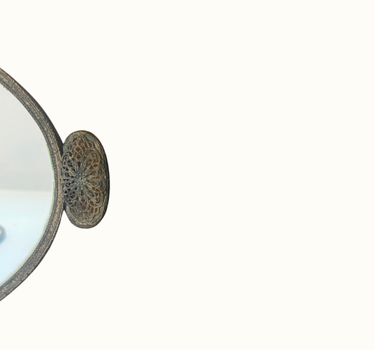 Vintage Gold Floral Inlay Pedestal Dish Bowl Decor