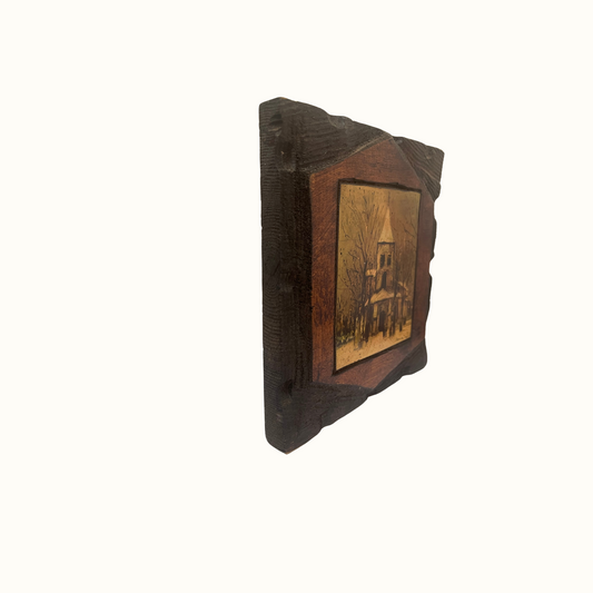 Vintage Hand Carved Wooden Frame with Church Painting Print