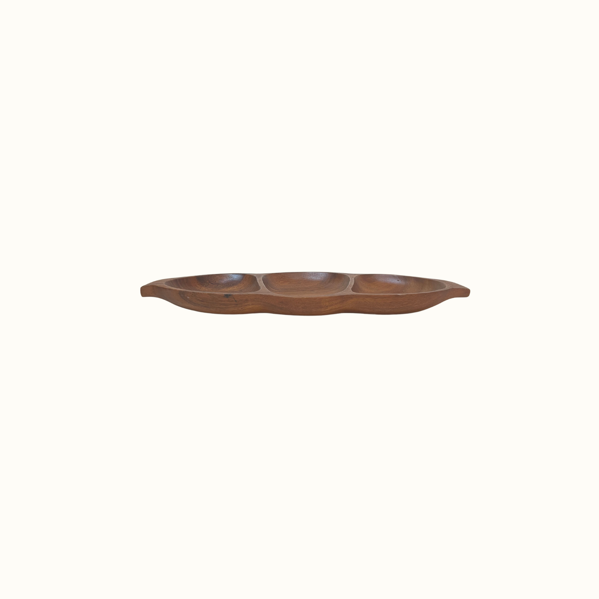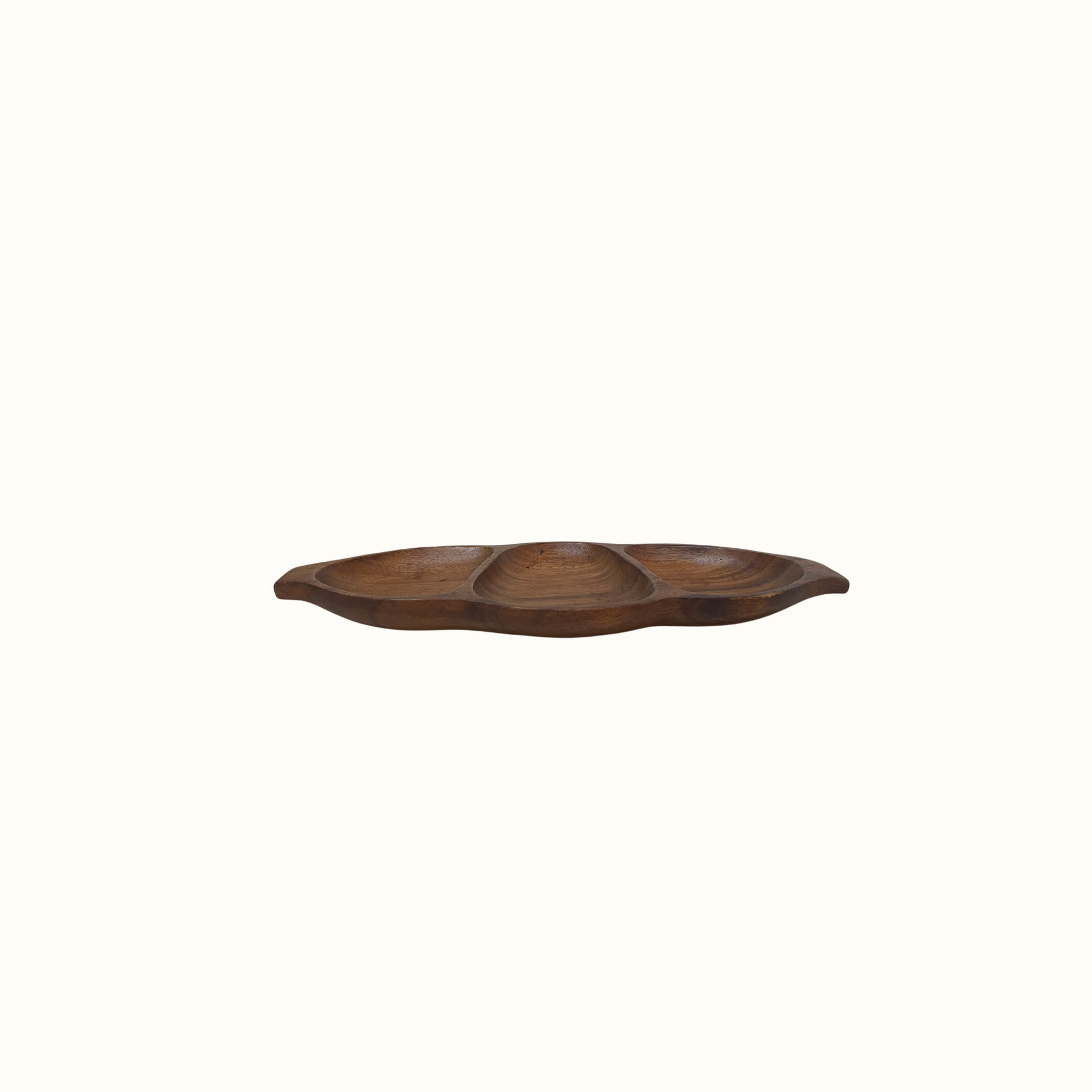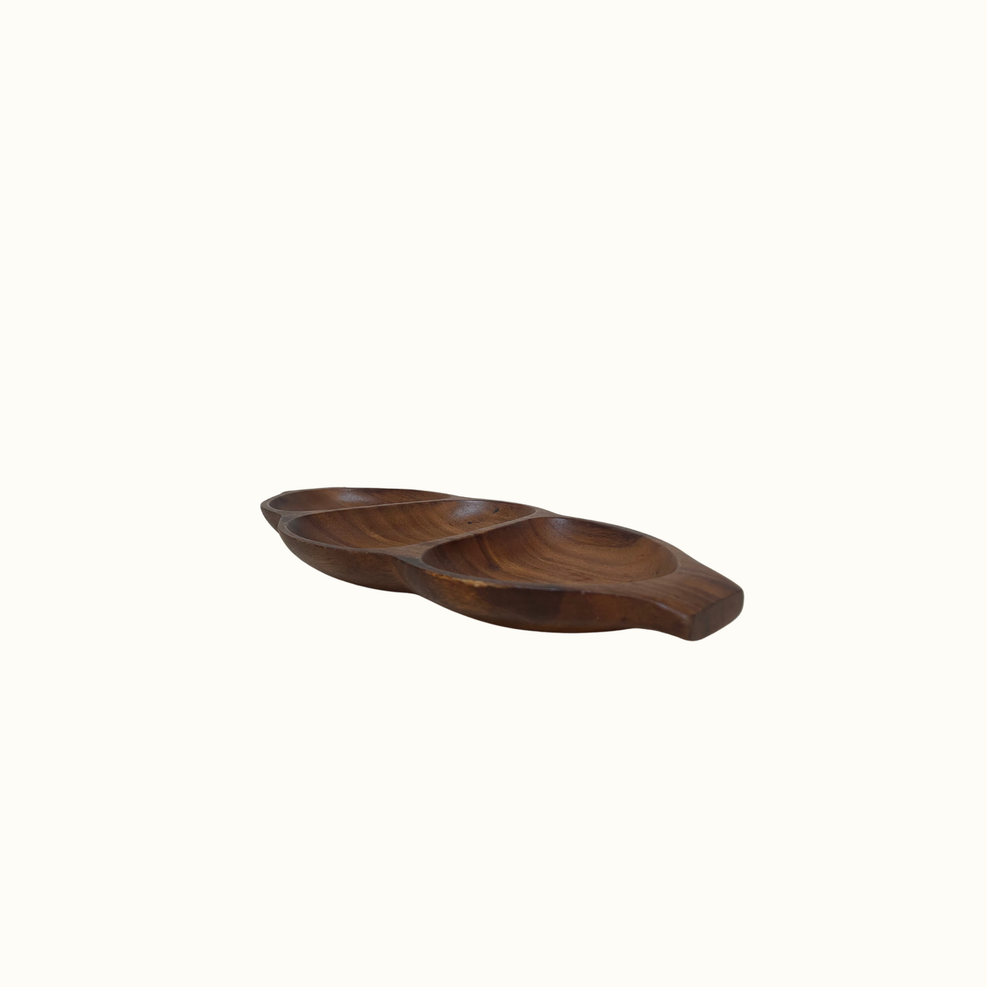 Vintage Hand Crafted Leilani Wooden Monkey-Pod 3 Section Bowl
